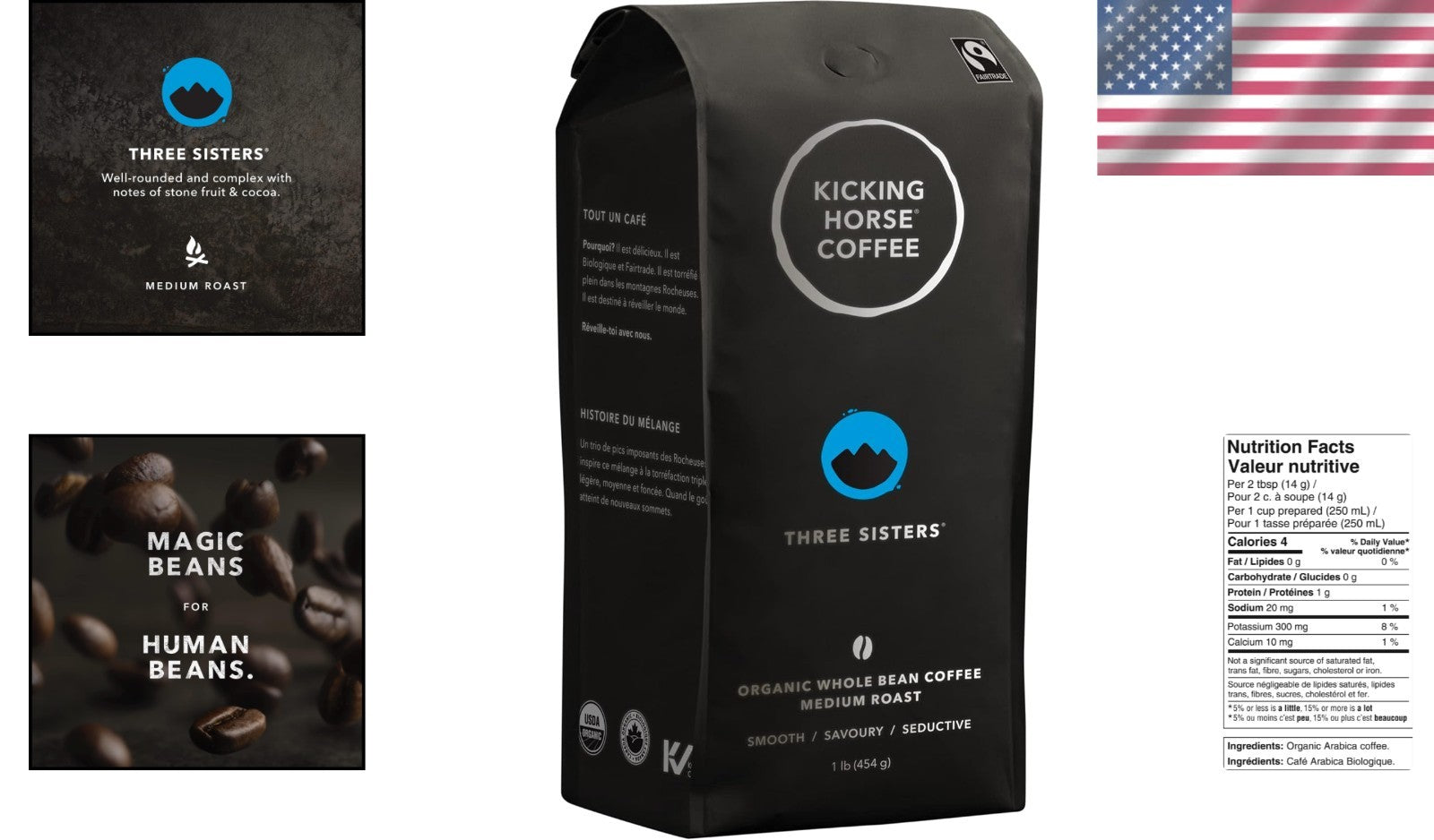 MEDIUM ROAST, WHOLE BEAN: Smooth, savory, and seductive – just like the majestic Three Sisters, a trio of towering peaks in the Canadian Rockies. Every cup pays homage to these powerful natural wonders.