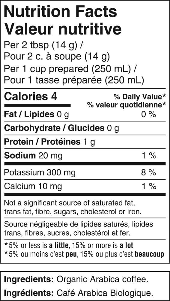 | Expiration Date: Organic Medium Roast Coffee | Calories per 100 g/mL: Organic Medium Roast Coffee | Course: Beverage | Number in Pack: 1 |